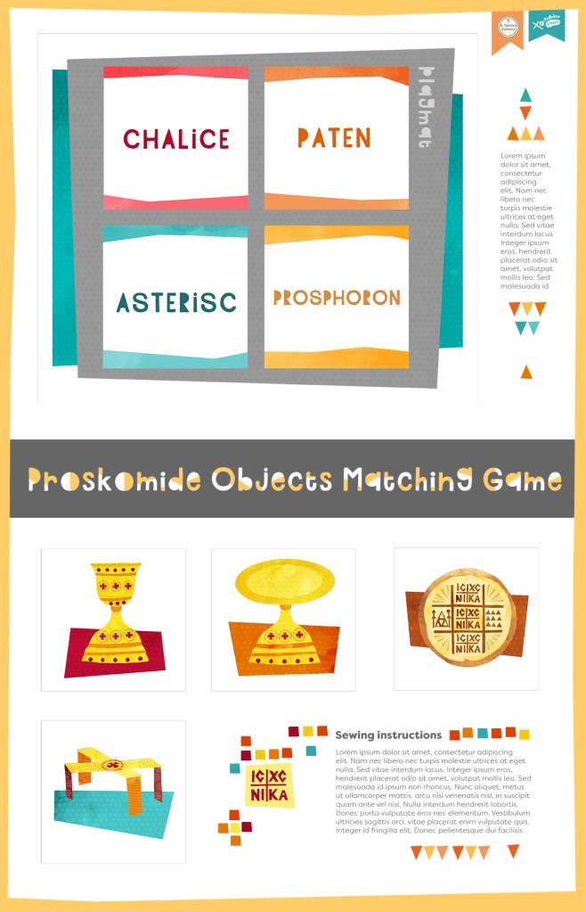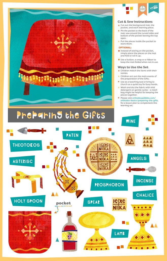 You may have already seen the Pascha learning sets we published in the spring. The Holy Gifts set was actually the first set we worked on, before we even started any of our other fabric products, and we went through various stages of planning and designing it.