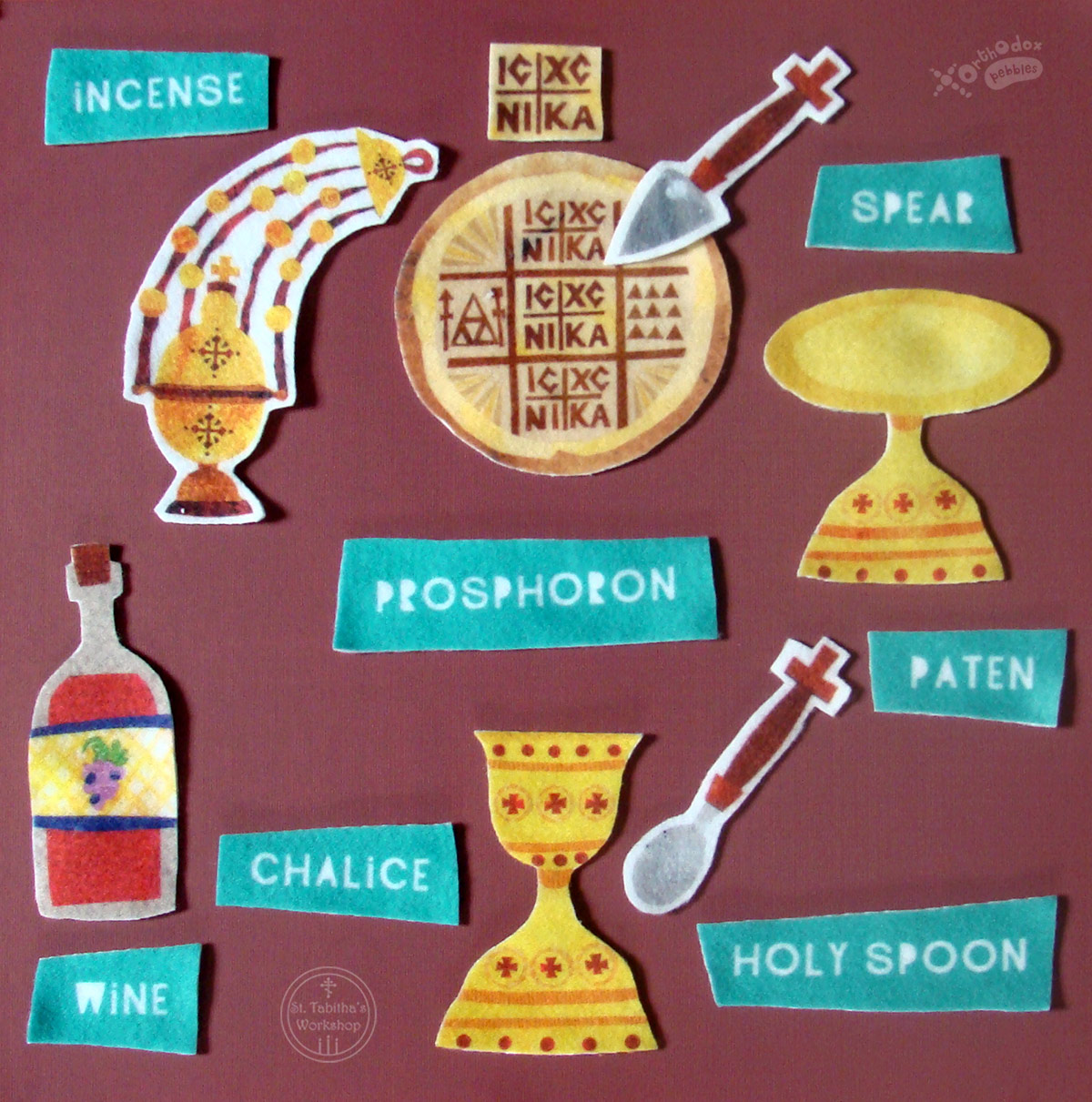 This was our very first educational fabric product, and our sole intention in making it was to help little children better learn and understand our Faith; still, we were very concerned about the possibility of our set trivializing such a sacred Orthodox theme as the Holy Eucharist – therefore, we discussed our idea with a number of priests and religious educators to get their insight.