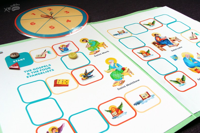 The text and research turned out to be quite extensive, and Despina spent long hours drafting, writing, and editing to please Natalie, who, in her ongoing quest to make our posts as short and to-the-point as possible, keeps cutting down Despina’s much-beloved details. Natalie experimented a bit with new techniques, and also worked to find a way of illustrating animals in a style consistent with the rest of the Orthodox Pebbles images. Finally, she was inspired to make a variety of time-consuming activities, including a more complex than usual board game – a type of activity she has been eager to try for a while. We are so happy to have finally completed this page and we hope you will enjoy it.