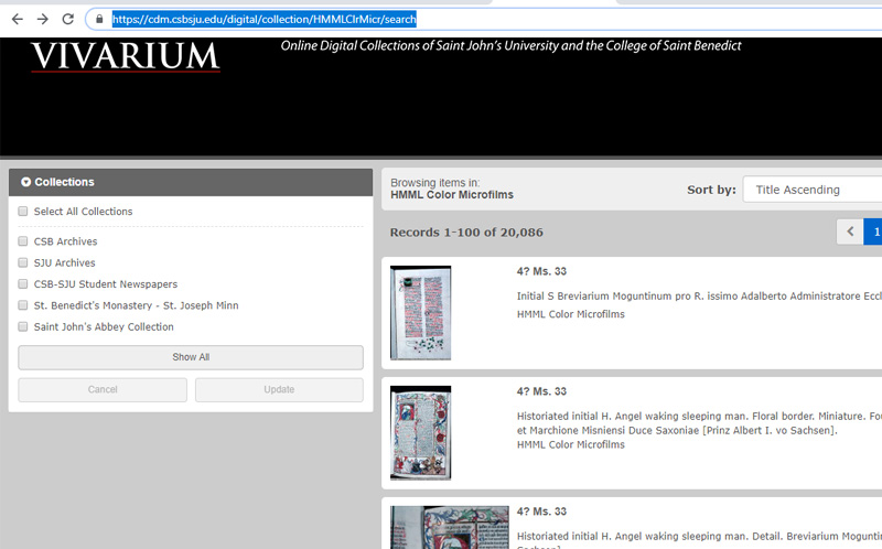 2. Vivarium: A collection of digitized manuscripts, art, rare books, photographs, and other resources from two Benedictine monastic and educational communities in central Minnesota.