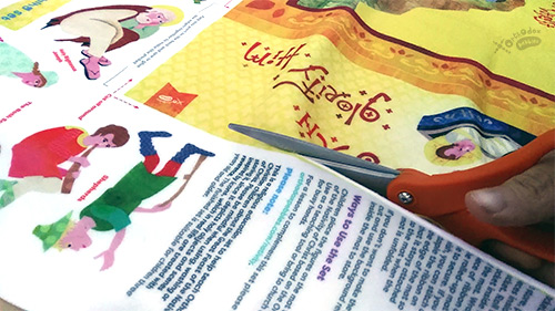 Making the learning set is a very simple and easy DIY project. It mostly involves cutting the pieces, and step-by-step instructions are printed on the fabric. If you don’t want to sew, you can just use glue to assemble the storage pocket – or you can skip making the pocket altogether if you prefer.
