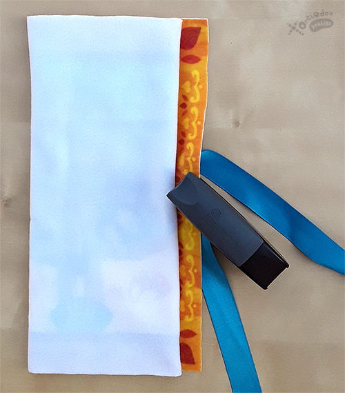 You can staple or sew the ribbon on the edge of the mat so it stays connected to the mat when it is opened.