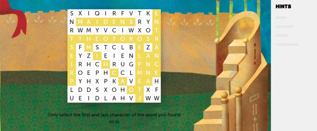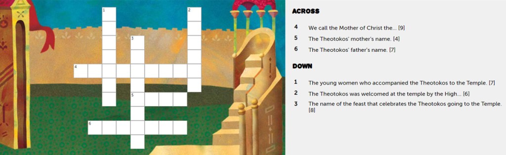 The following online activities were designed to accompany our lesson plan on the Entrance of the Theotokos.