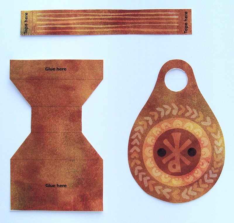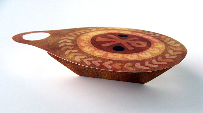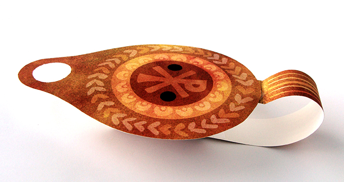 To come up with the template design, we researched a variety of sources for examples of ancient oil lamps from around the Eastern Mediterranean, as well as for Roman and Byzantine ones. Our design was mostly inspired by a 5th-6th century Coptic lamp from Egypt, now at the Metropolitan Museum of Art.