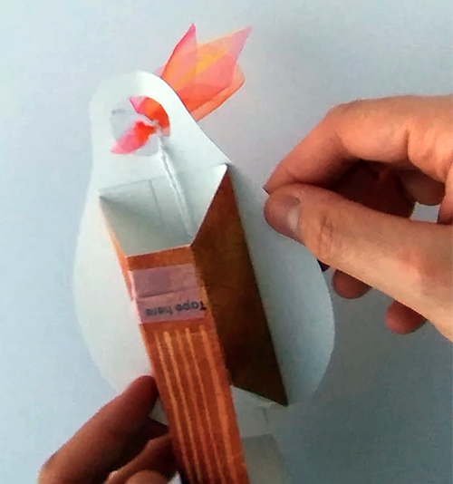 Fold the larger shape on the dotted lines and then glue it closed as shown in the video below.