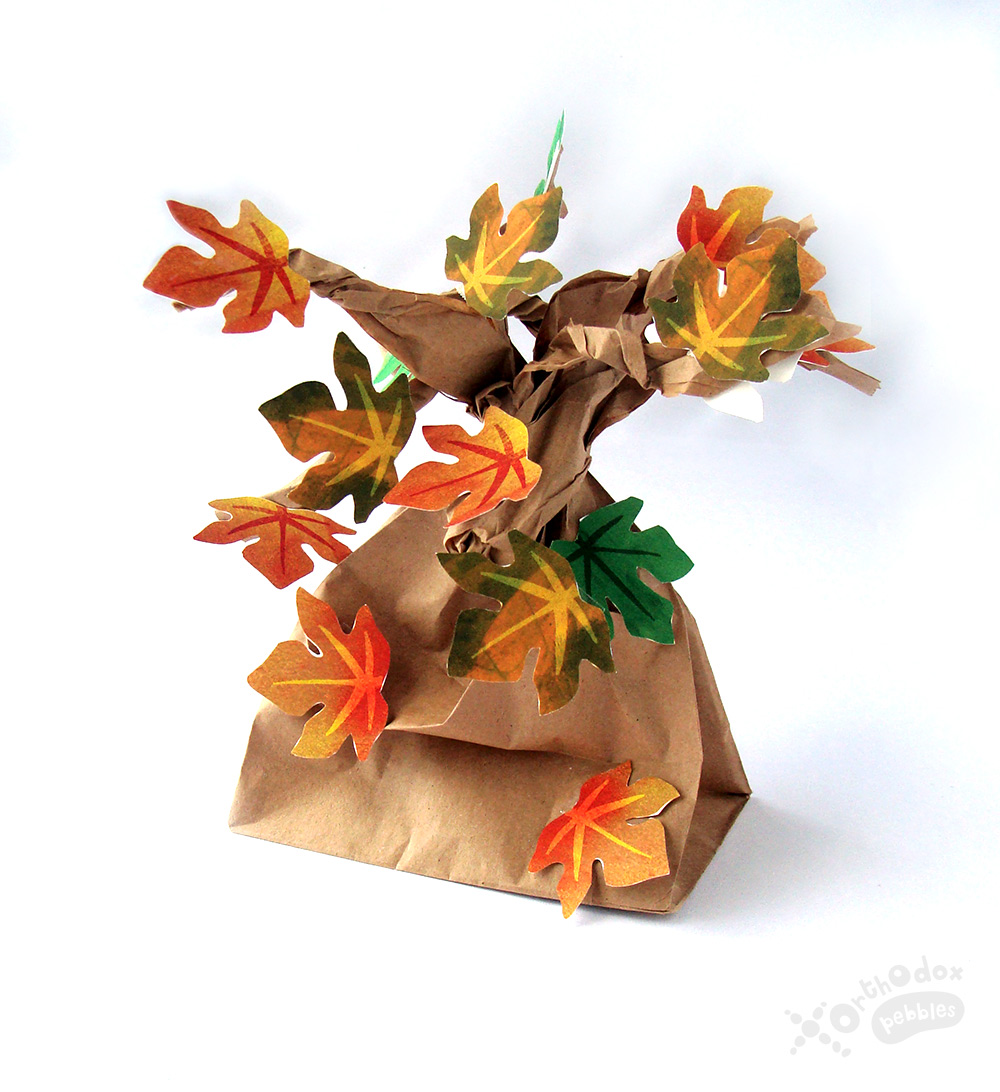 Twist a few strips together to make each branch. Tape or glue the leaves onto the branches.