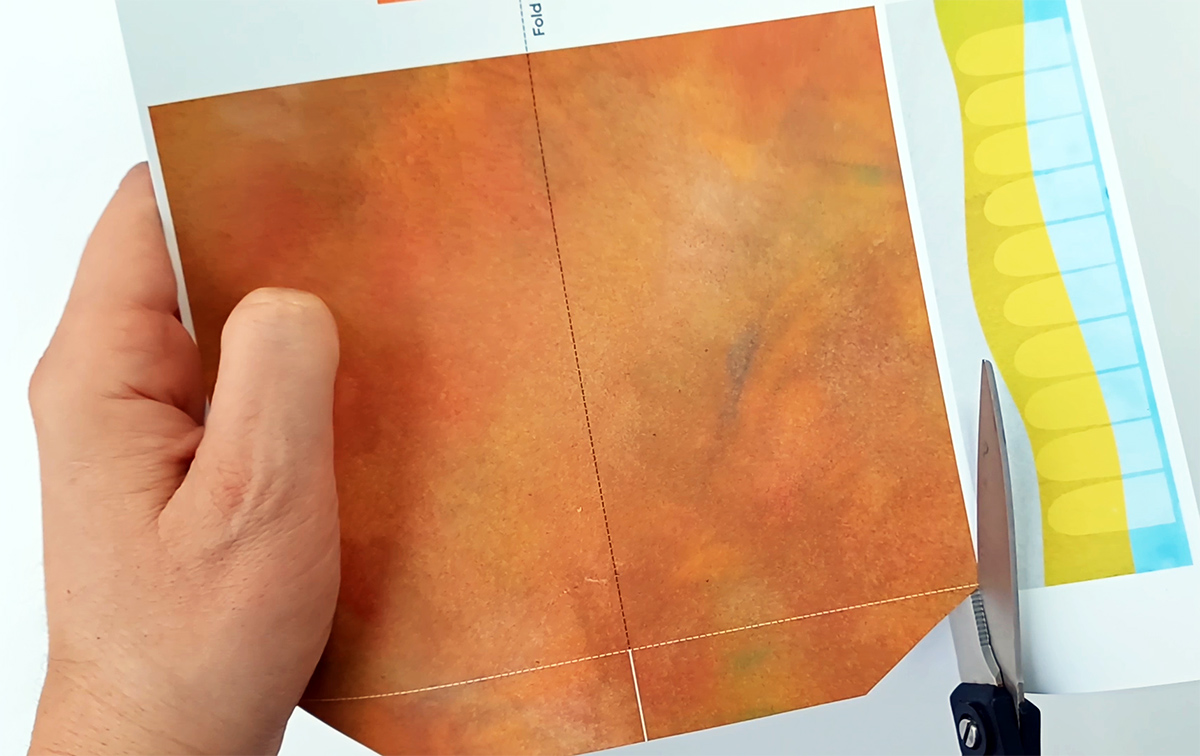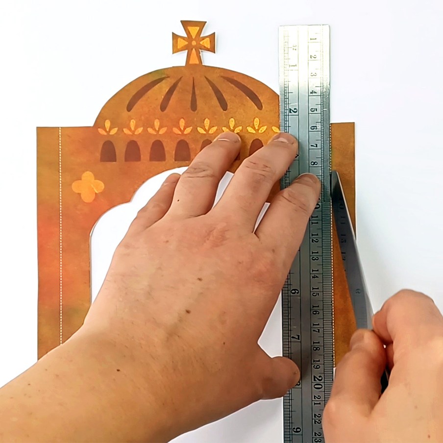 Fold the templates at the dashed lines. To fold them more neatly, you can first score them using the ruler and the blunt kitchen knife.
