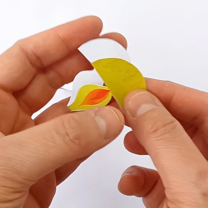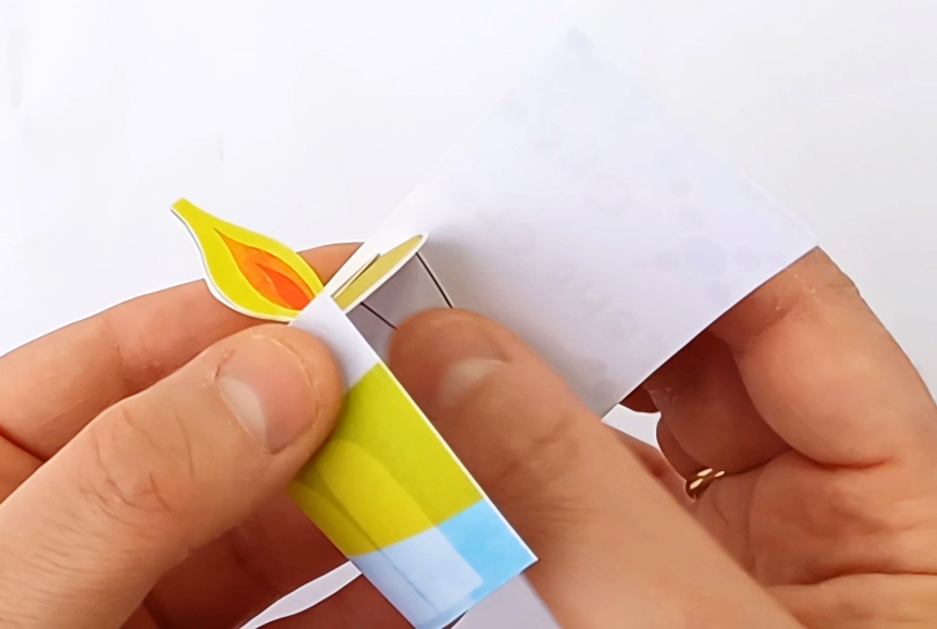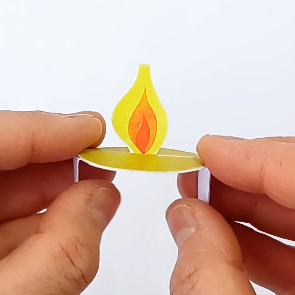 Fold the flame and the flame base as shown. Glue the flame onto the flame base.