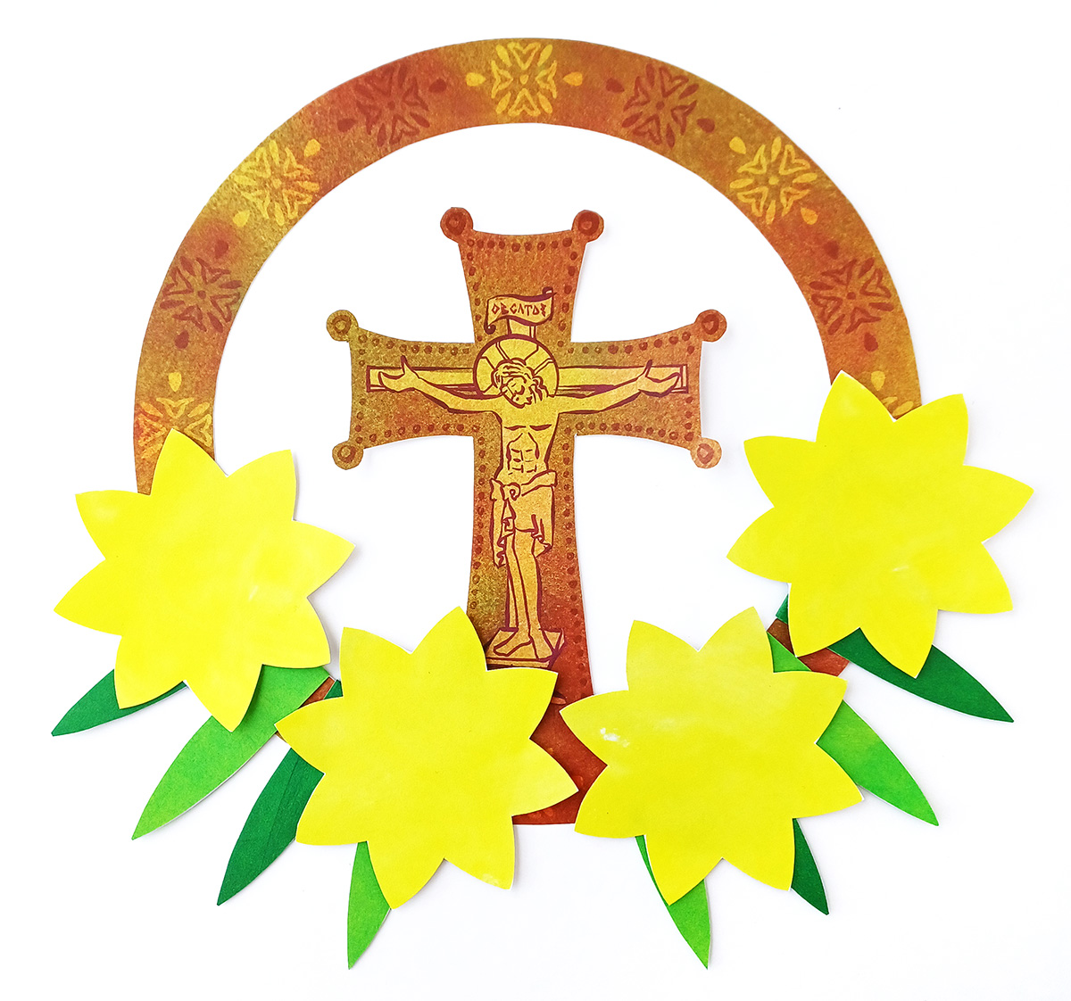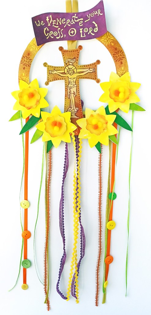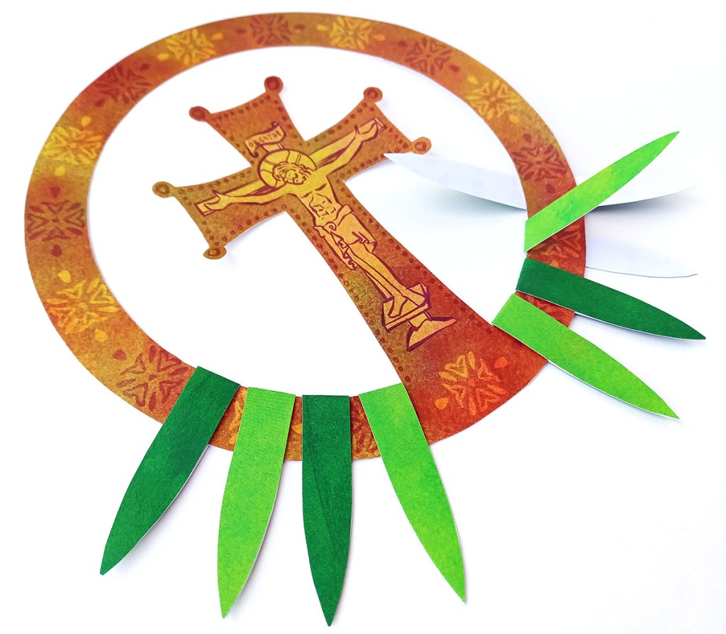 This craft is a paper wreath to honor the Holy Cross, inspired by the Church celebration of the Feast of the Veneration of the Holy Cross.
