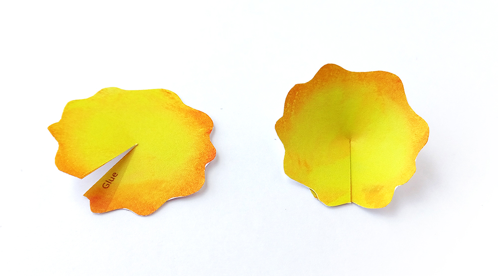 Make the top parts of the flowers by gluing each piece onto itself as shown.