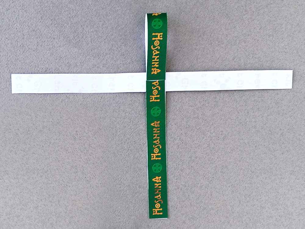 - To finish the cross, fold the two parts of the second strip to the center, gluing them in place.