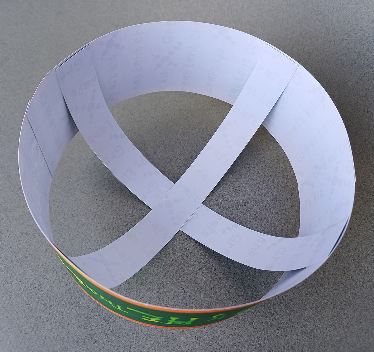 - Glue a second long strip onto the back of the first one perpendicularly, forming a cross. The second strip should be positioned onto the first strip where the loop ends and the straight part begins.