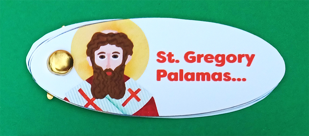 This mini-book helps explore the life of St. Gregory Palamas. Mini brads are helpful – if you don’t have one, you can always use a regular brad and cut off the extending prongs.