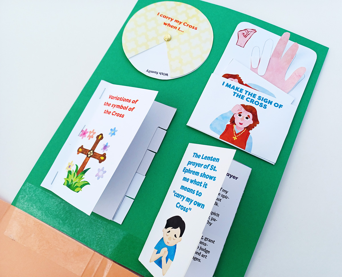 This is an activity for older children. It helps discuss the Lenten prayer of St. Ephrem as an example of “carrying our own Cross”.