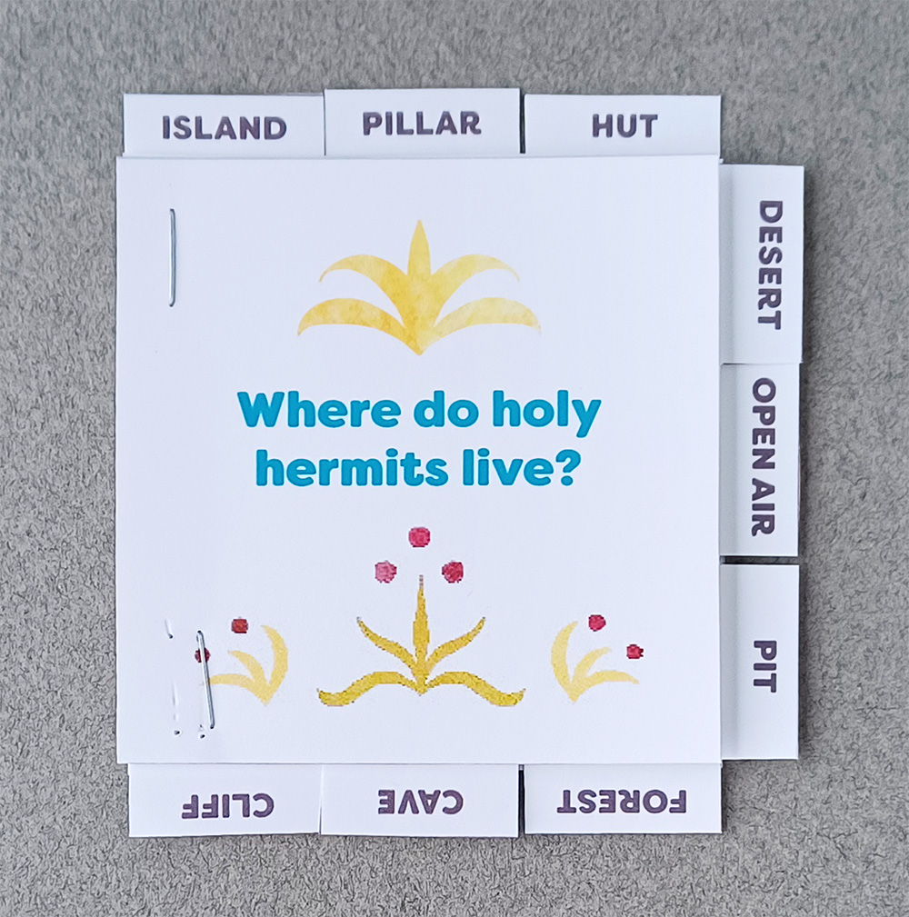 On each page, the child writes an example of a Saint who lived in each kind of place and, if desired, a few basic facts about him/her. Alternatively, they can draw pictures. If nine tabs are too many, you can choose to use only six (right side and bottom) or only three (right side).