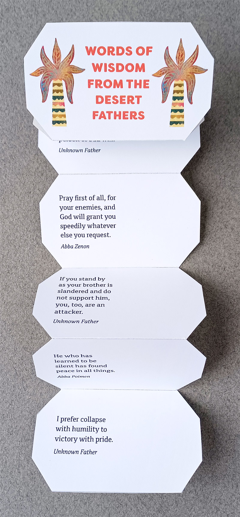 The sayings are adapted from the book: The Ancient Fathers of the Desert: Translated Narratives from the Evergetinos, translator: Archbishop Chrysostomos of Etna – as offered on the website of the Greek Orthodox Archdiocese of America.
