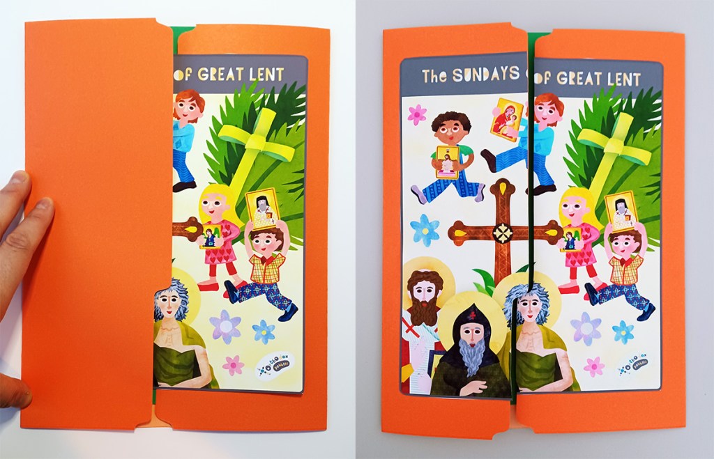 The child has to open up each flap and write about (or draw a picture of) what is celebrated on each Great Lent Sunday.