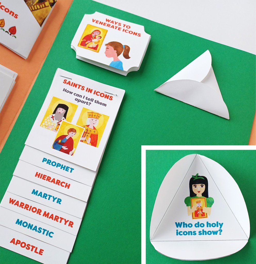 - A six-section layer book to work on how to tell different types of Saints in icons.