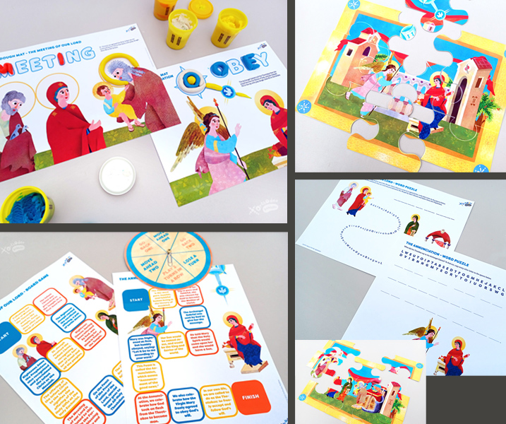 Our learning set is an act-out educational resource made out of soft fleece. It teaches the Great Feasts of the Meeting of our Lord and the Annunciation of the Theotokos in a hands-on, Orthodox-focused way, helping the children better understand the relevant stories and theology.