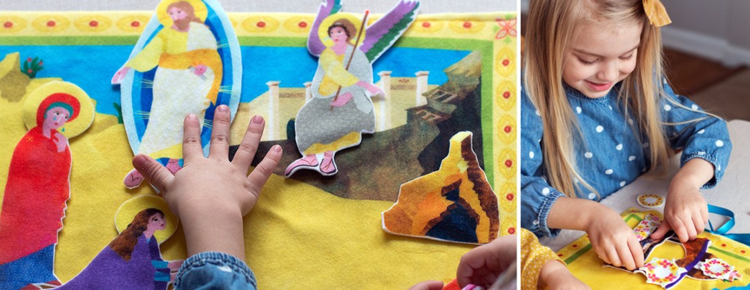 A soft fabric hands-on teaching tool to help young children learn about the Nativity of Christ in an Orthodox-focused way.