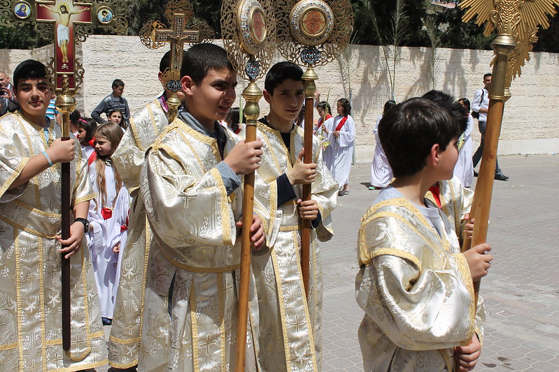 Palm Sunday procession at the Greek Orthodox Church of Saint Porphyrius in Gaza, Palestine, April 2012. Photos by Joe Catron, Creative Commons License CC BY-NC 2.0 via Flickr.