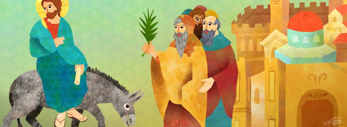 - The children laying down their garments and cutting down palm branches are not explicitly described in the Scriptures. However, they are specifically mentioned in the hymns of the Church: “Sitting on Your throne in heaven,ย carried on a foal on earth, O Christ God!ย Accept the praise of angels and the songs of children who sing:ย Blessed is He that comes to recall Adam!” (Kontakion, see below). The children represent those with child-like simplicity and devotion who truly praise and believe in the Lord.
