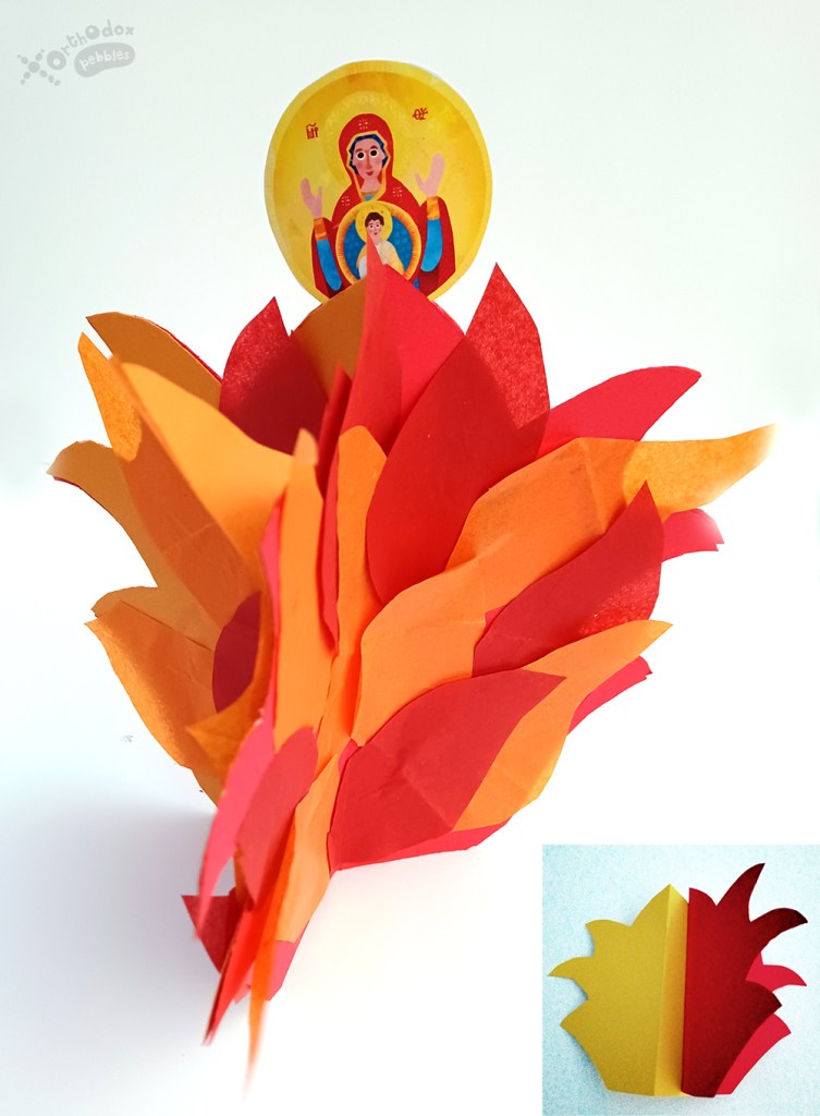 • Insert the Theotokos circle at the top of the fire as shown. Tape the flame shapes all over the fire. READY!