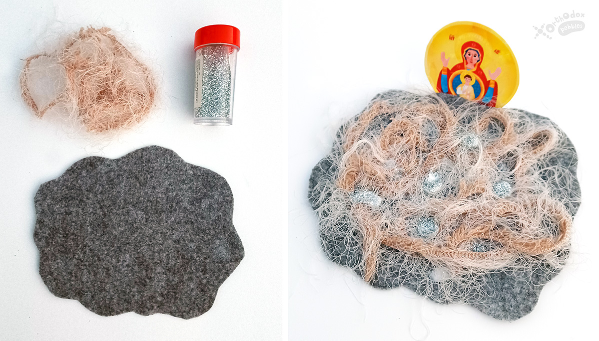 • Glue a small part of the Theotokos circle underneath the felt, then fold it upwards. READY!
