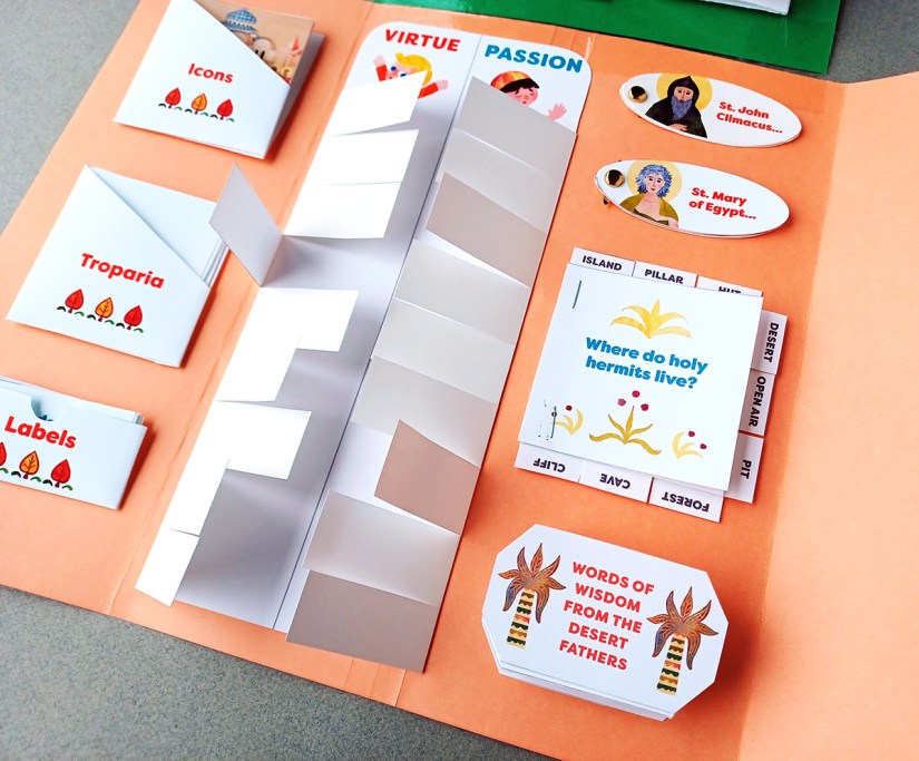Our Great Lent lapbook is separated into sections, one section for each Sunday of Great Lent. The student can work on the lapbook gradually, aiming to have it completed by Palm Sunday evening.