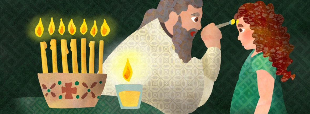 - Act out lighting the seven candles and anointing with holy oil. A bowl of flour can be prepared, where seven candles are placed one-by-one and then lit. Depending on the age of the children, while doing this, parts of the readings can also be read. Then, the teacher can use a cotton swab to show how the priest anoints us with oil. Another option would be for the children to show how the anointing is done on a doll. Please note: Such enactments can be useful when teaching young children, as they help make abstract concepts more concrete; however, care should be taken that they are always done in a reverent way.