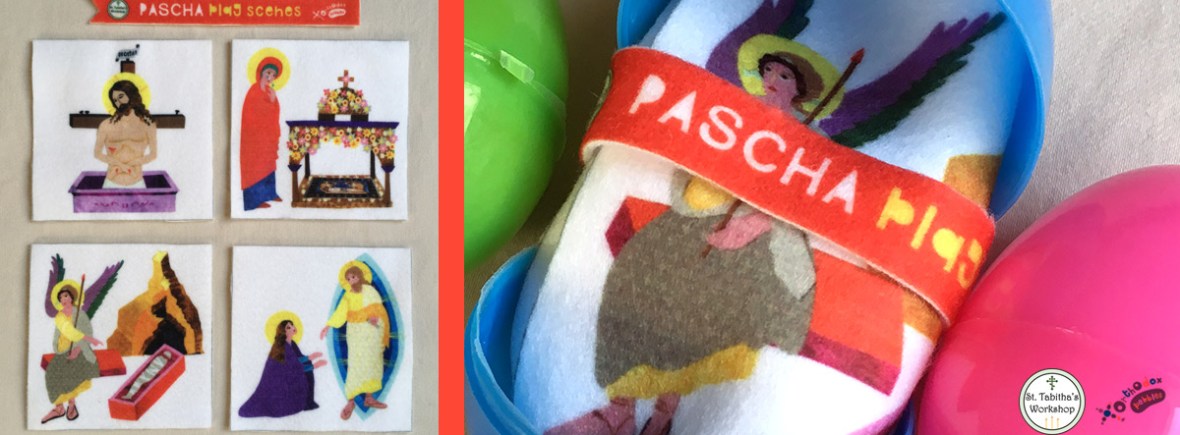 This product is a small fabric learning set ideal for a Pascha basket stuffer. The child can put the scenes in order to retell the story of Pascha. For a full lesson to complement this set, please visit our page Four Icons for Pascha.