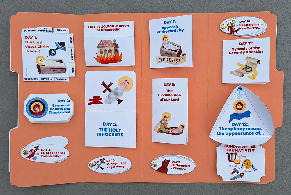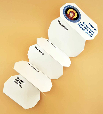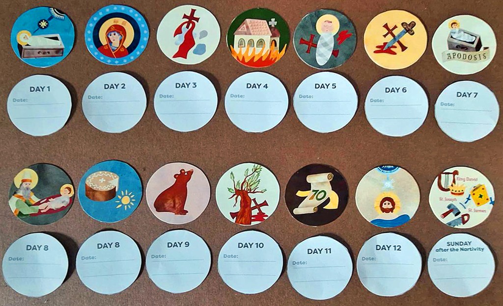 All of this might be confusing for the children. Therefore, in our material, just for reasons of clarity and simplicity, we begin counting the twelve days on the day of the Nativity (Dec. 25/Jan 7), and end with the Eve of Theophany, on the calendar day actually preceding the feast (Jan. 5/Jan. 13). When working on the twelve days, add in the moveable Sunday on whichever calendar day it falls on that specific year.