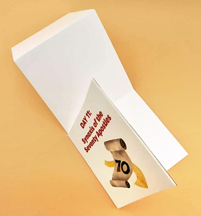 On each of the four parts of the mini book, the child writes or draws a picture of some information about the Holy Seventy Apostles.
