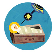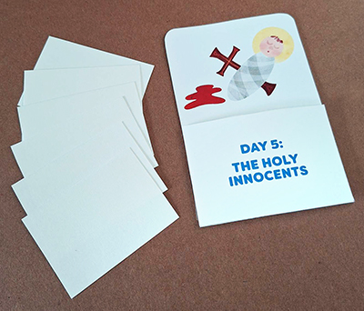 The child draws a comic strip of the story of the Holy Innocents, each card showing one panel. Then the child places the cards in order and tells the story.