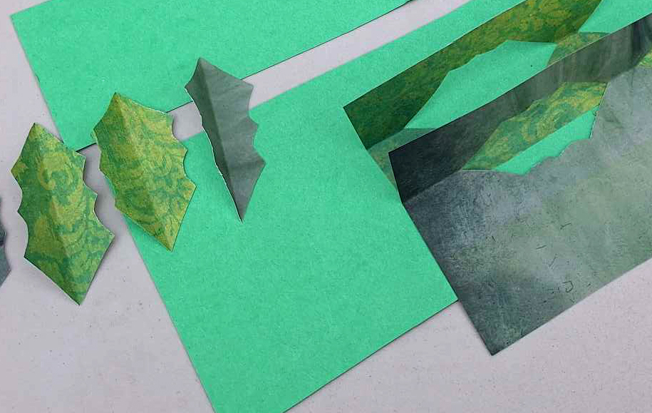 - Another kind of green paper for the leaves (we used scrapbooking paper but any green paper, such as wrapping or collage paper would work). This is optional.