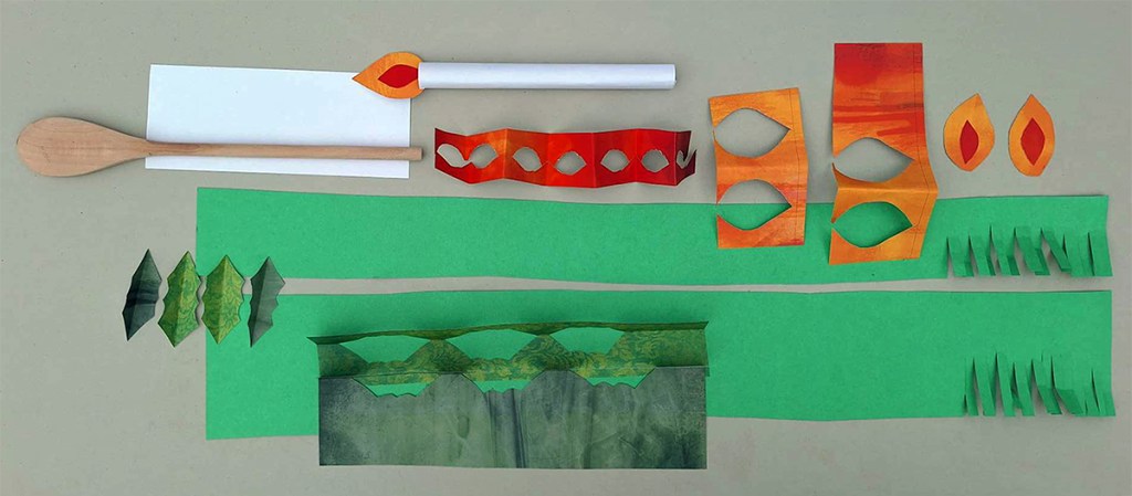 - Orange and red paper for the little berries and the flames (again, we used scrapbooking paper but any other colored paper would work).