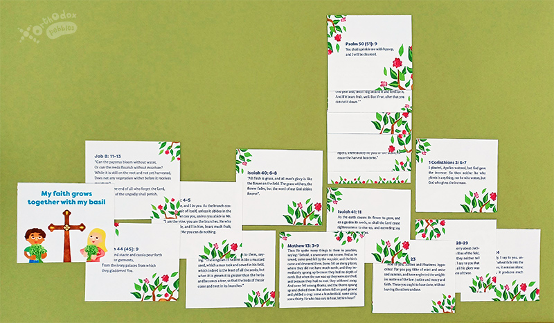 To make it easy for the adults organizing the project and for the children carrying it out, we compiled a collection of plant-related Bible verses in our printable packet that we felt cover important areas of Orthodox teaching. It is not an extensive compilation; the Bible contains many more plant-related passages, and you – and/or the children – are encouraged to do your own searching to locate additional ones. To facilitate a fruitful discussion, we are accompanying these verses with short comments/explanations; however, we, again, encourage you to do your own additional research for a more complete approach. Some of our passages may be a little tough for the youngest children to grasp – you can pick and choose the ones that are appropriate for the children you are working with.