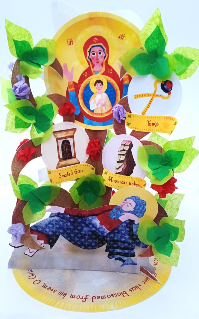 Our Jesse tree is based on Orthodox theology, iconography and hymnology. Its main purpose is to promote an understanding of the connections between the Old and New Testaments. It helps teach nine Old Testament stories, focusing on their hidden symbolism, which, according to the Fathers of the Church, points to the mystery of the Incarnation. These symbols and connections have a prominent place in the Orthodox celebration of the Nativity season and in the liturgical life of the Church as a whole.