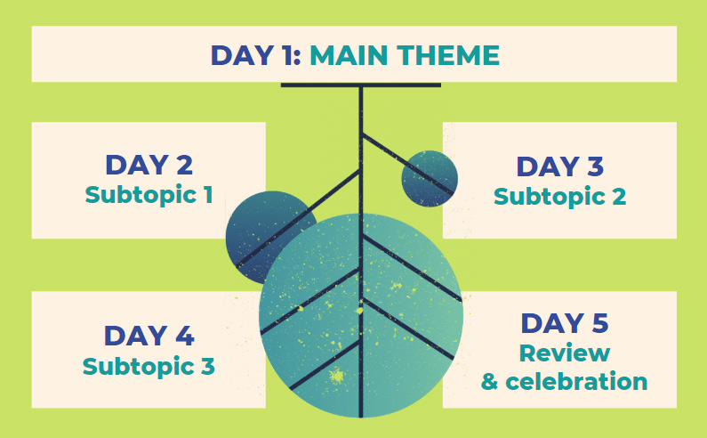 Before starting a session, it is recommended to read through all the slides to decide which ones you would like to use. You can pick and choose the parts of the plan that work for your group, also complementing our activities with your own. On the final day, we are offering suggestions for an end-of-program celebration, with participation from the whole school.