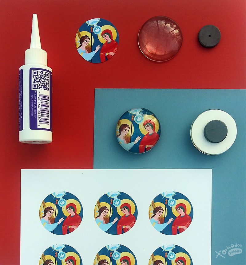 Our printables can be used to make large glass button magnets (diameter: 5cm). We are including links to the products we used to make this craft, but you can use any similar products you might already have or are able to find. *Please note: We are not receiving any kind of financial compensation for mentioning the specific products. We are only including them to share our experience in case it is helpful to our readers.*