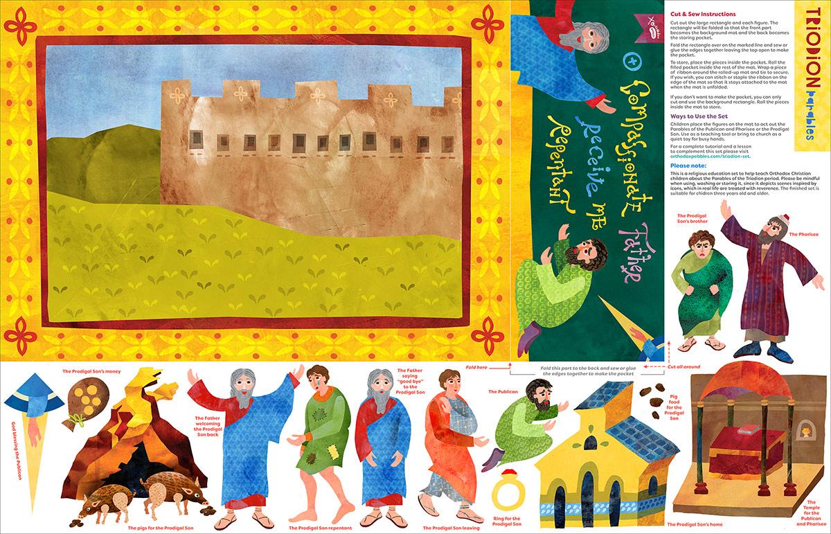 Our learning set is an act-out educational resource made out of soft fleece. It teaches the Parable of the Publican and the Pharisee and the Parable of the Prodigal Son in a hands-on, Orthodox-focused way, helping the children better remember the story and understand the meaning of these two parables of the Triodion period.
